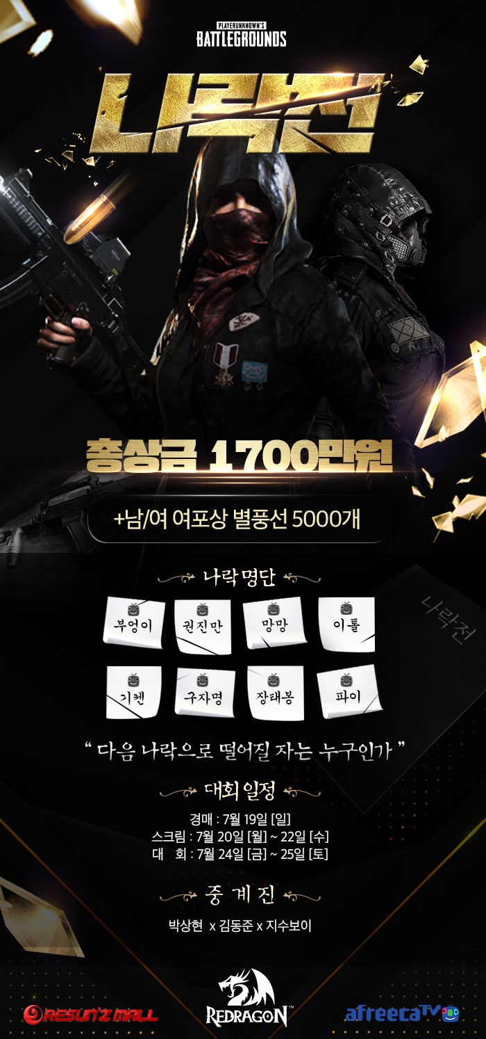 2020 배틀그라운드 BJ나락전 시즌3 후원하게 되었습니다.