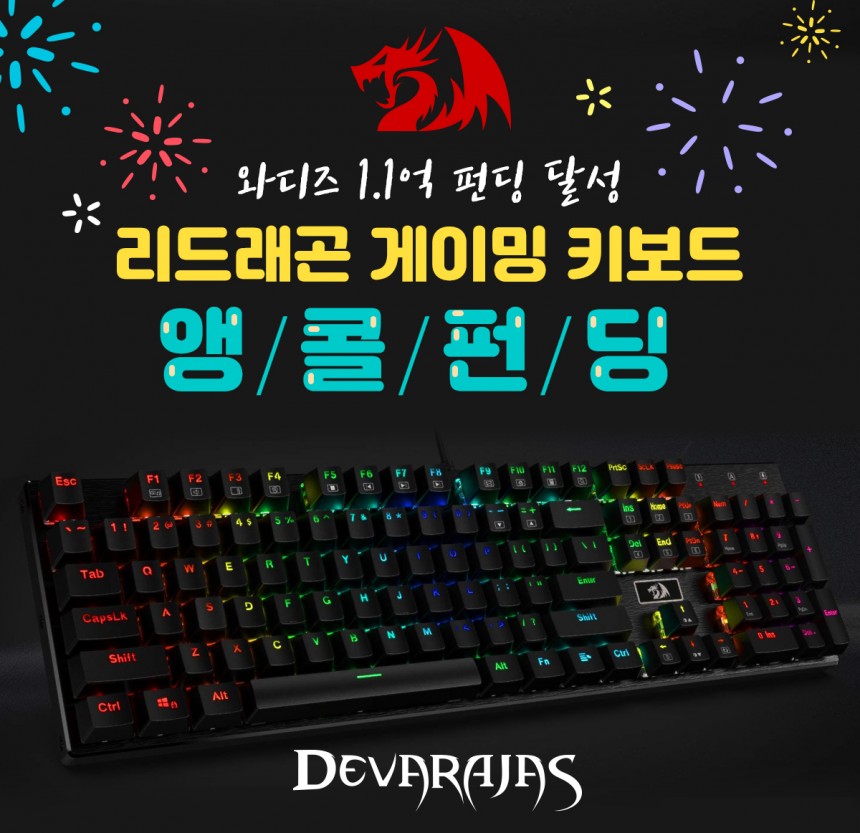 리드래곤 기계식 게이밍 키보드 ‘데바라자스’ 는 지난 펀딩에서 총 1,521명의 서포터가 참여해 목표치의 5607% 초과 달성하여 성공적으로 펀딩을 마무리하였습니다. 1차 펀딩에 참여했던 서포터들의 자세한 사용 후기와 함께 2차 펀딩 요청이 이어짐에 따라 동일한 리워드의 앵콜 펀딩을 결정했습니다.